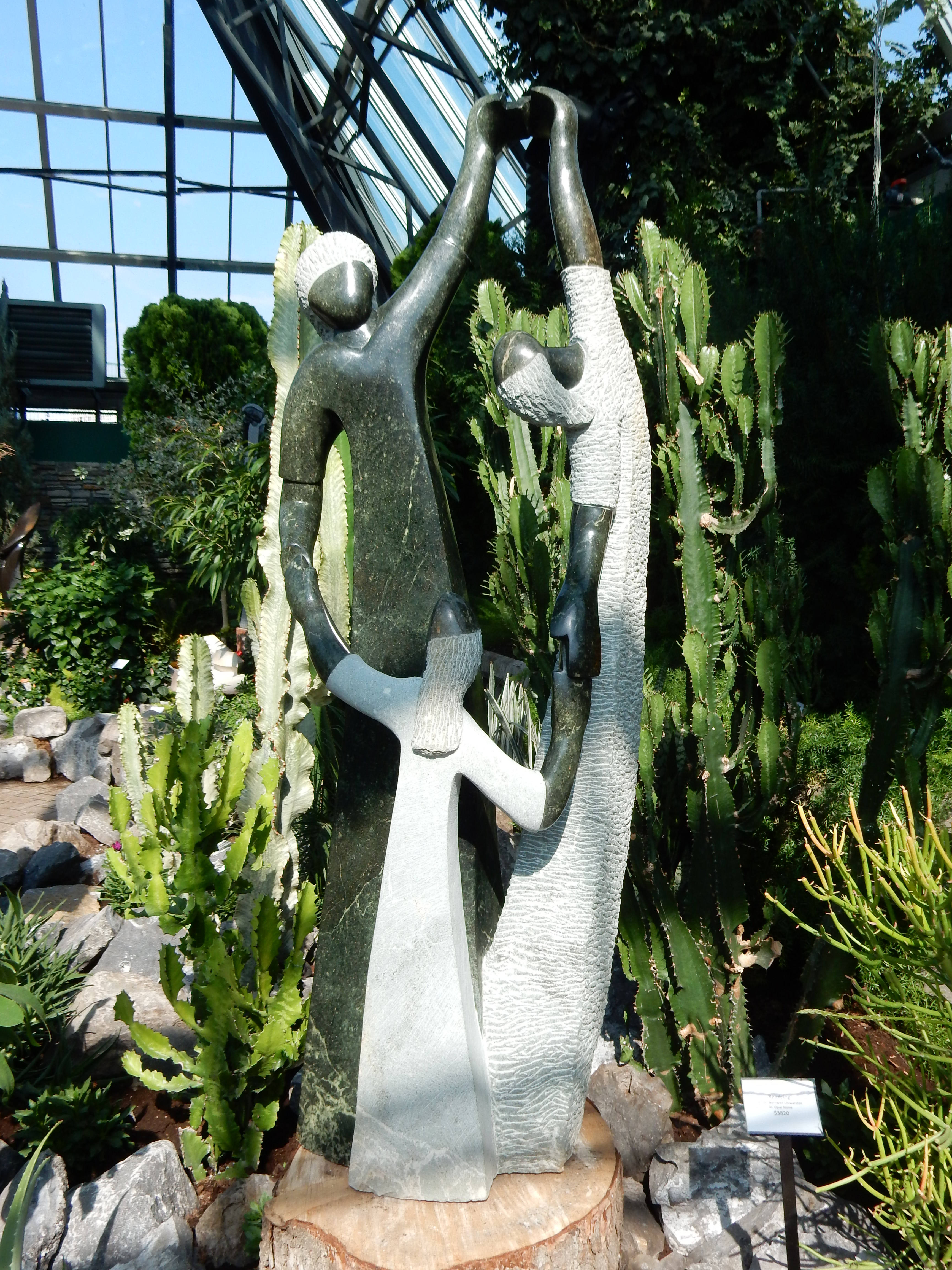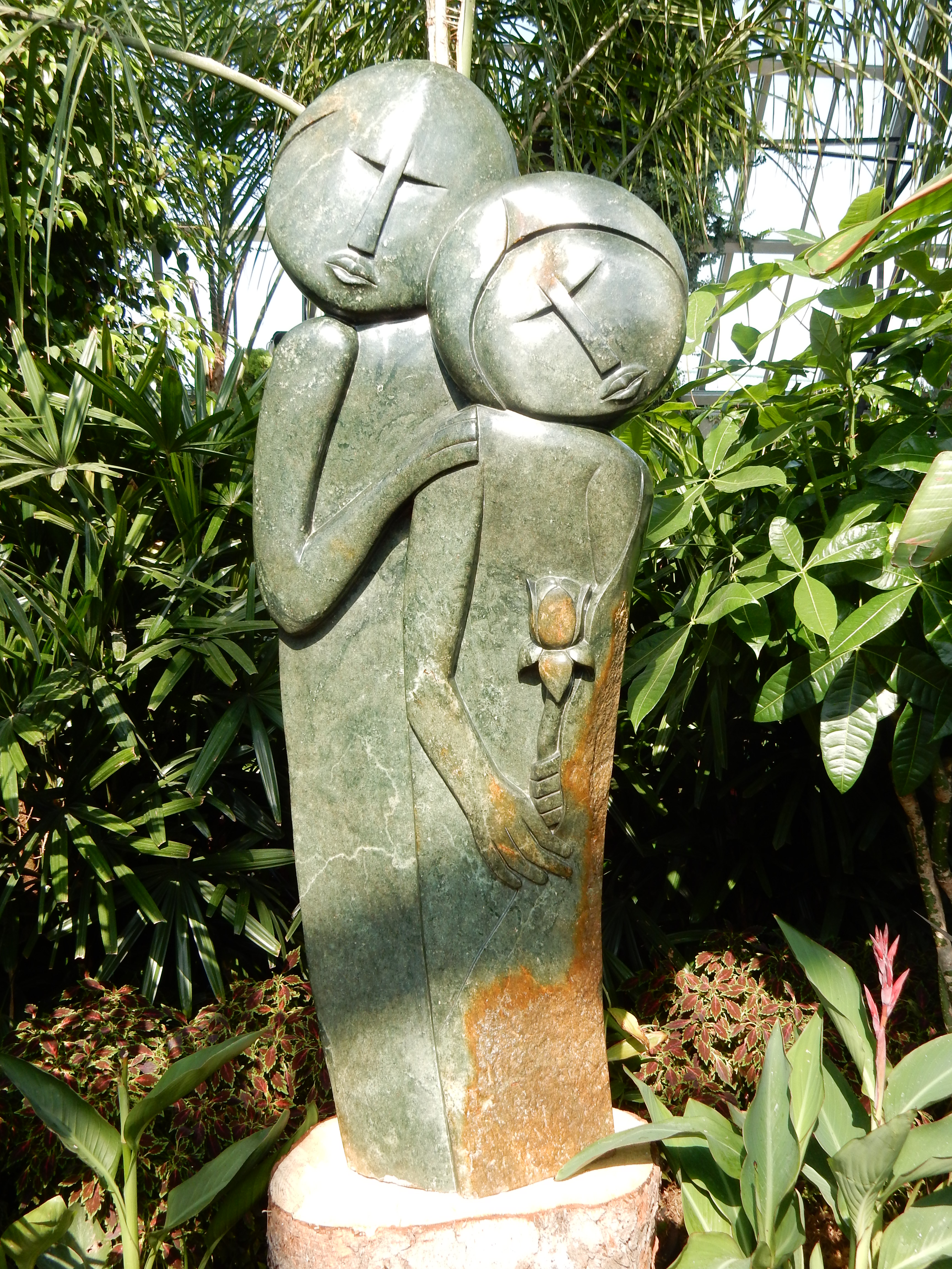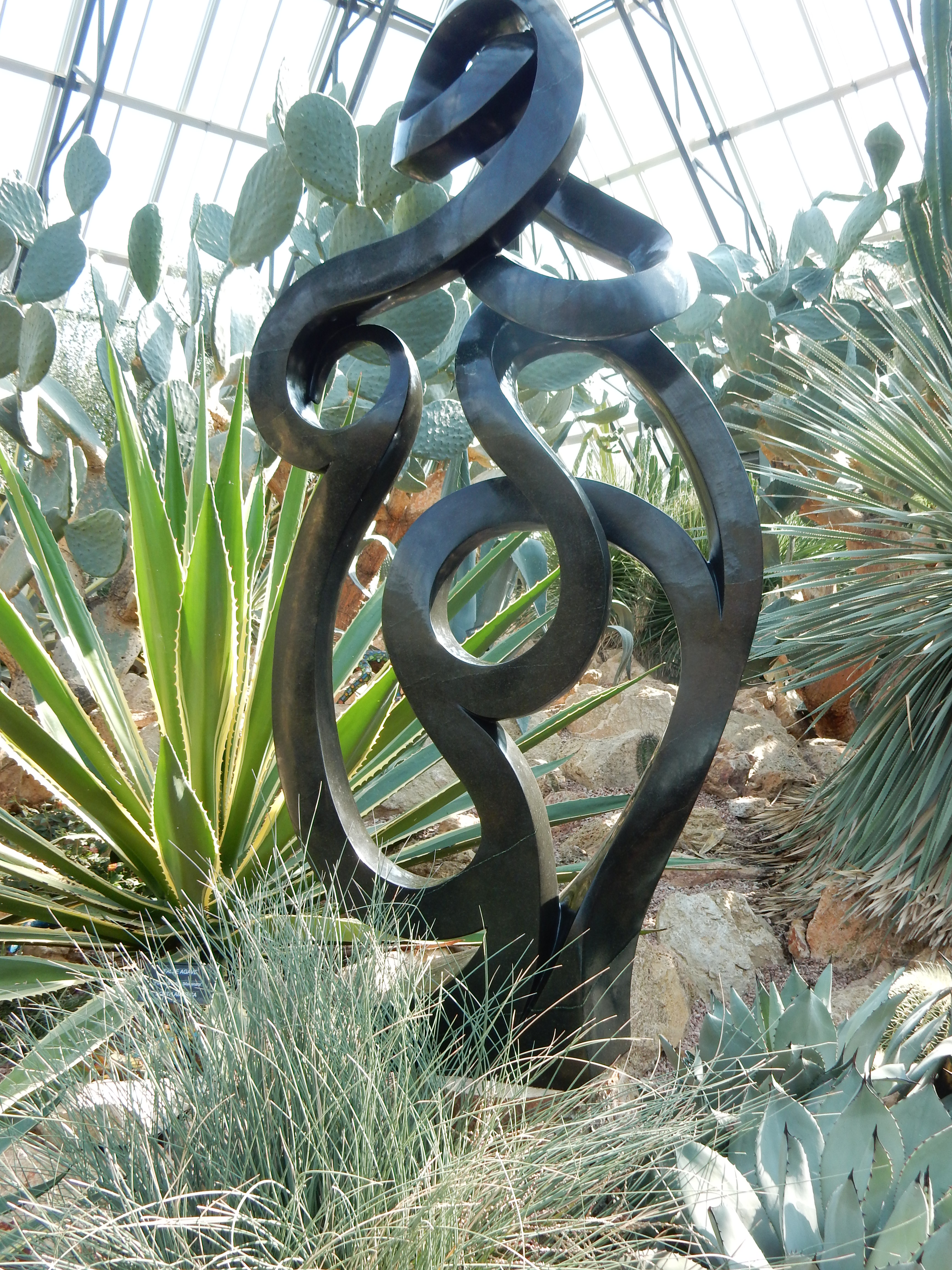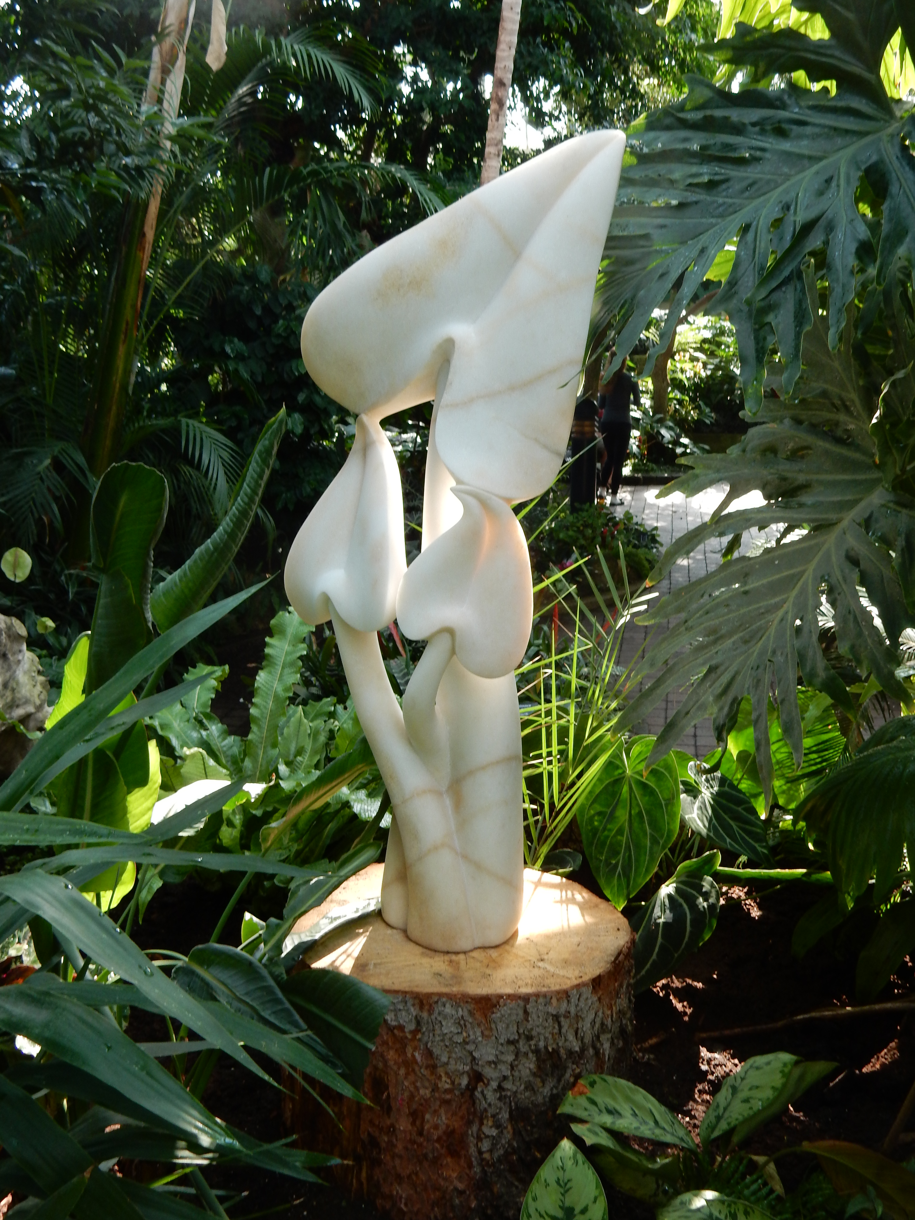 Walking around the Muttart’s pyramids is always sense-stimulating, but the dozens of sculptures on display, each artistically placed to complement a plant, a waterfall, or a ray of sunshine, made my tour even more fascinating.