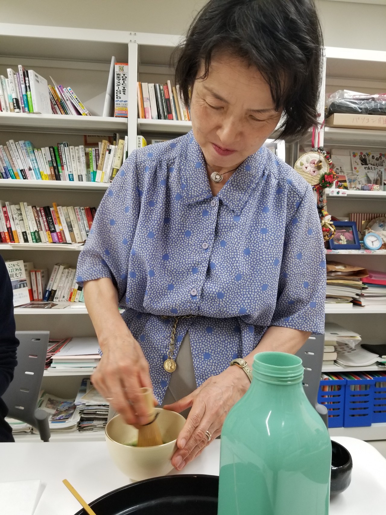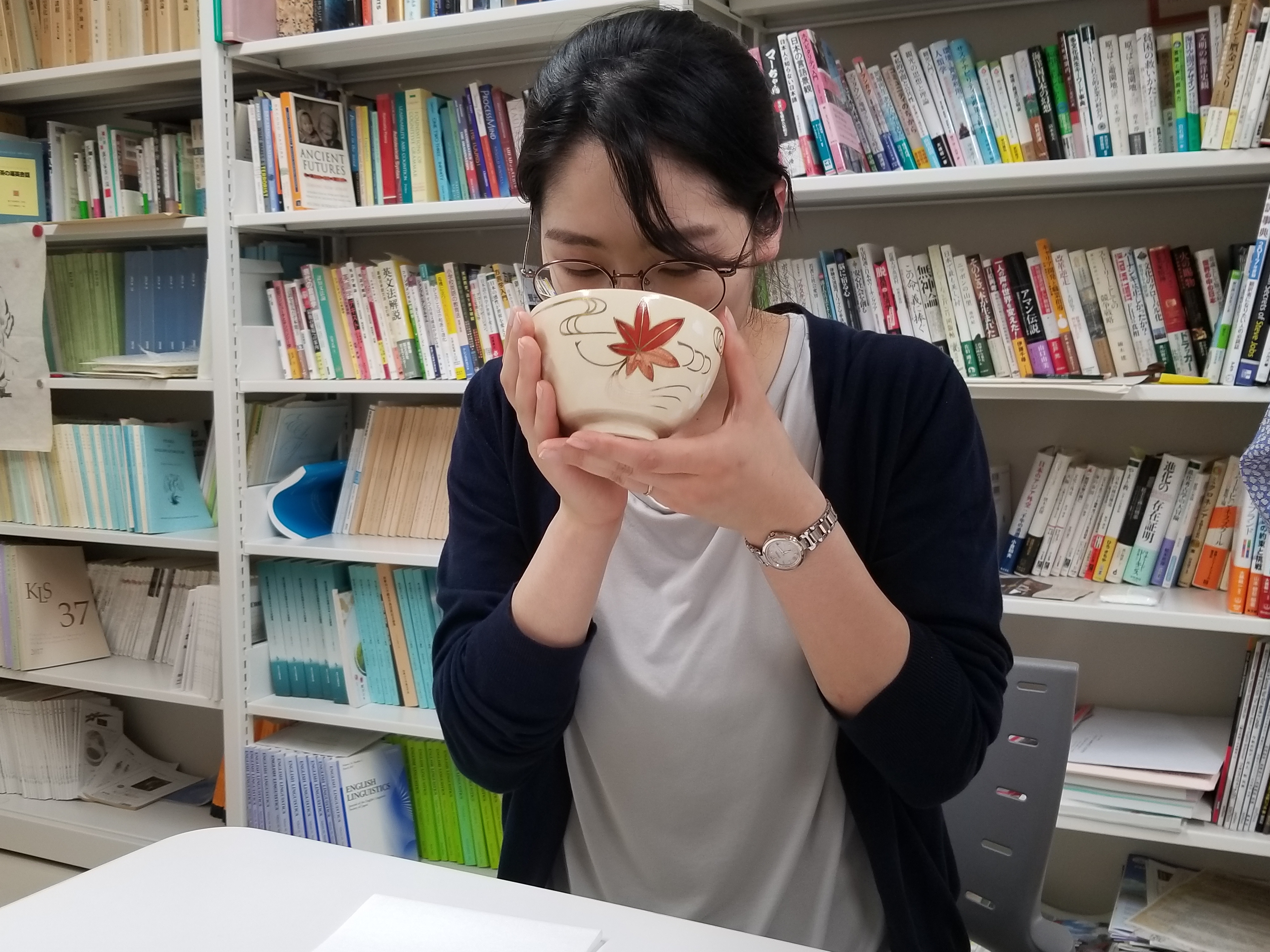 The 90 minute class rushes by. After the students leave, Dr. Takehana and I settle in to talk about English-medium instruction. During our conversation, I find out that not only does she have a background in linguistics but also a passion for Japanese culture. She is a master of chanoyu, the art of the tea ceremony, which has existed in Japan for 500 years. Then, she gives me two gifts: a book on the tea ceremony which she has recently translated into English, and an invitation to stay for tea with her.