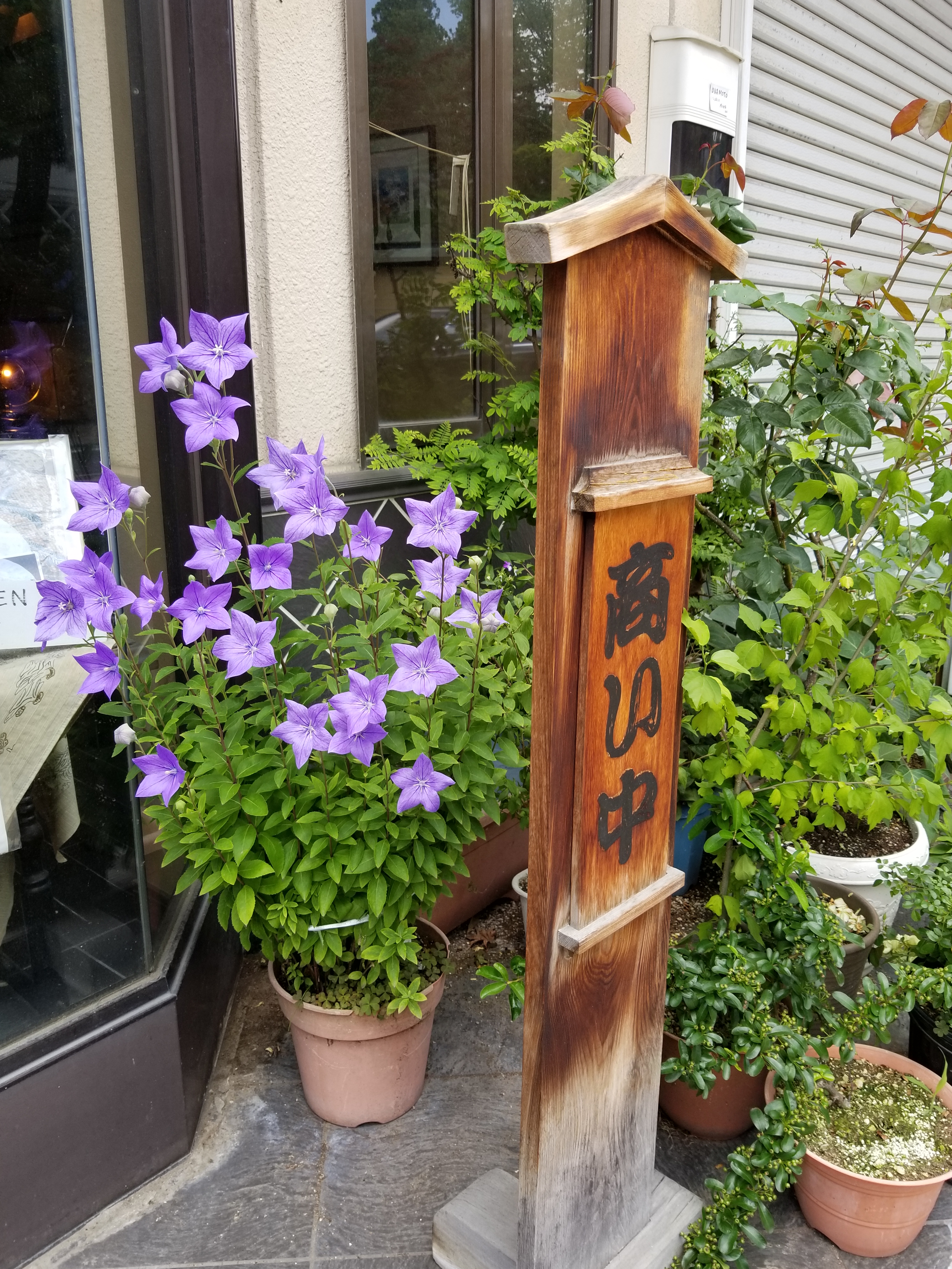 After wandering around a bit, we headed out to the main road, and browsed the quietly commercial sector of Koyasan, where shops and restaurants serve visitors’ more  worldly needs. But even here, an aesthetic grace matches the serenity of the spiritual areas.