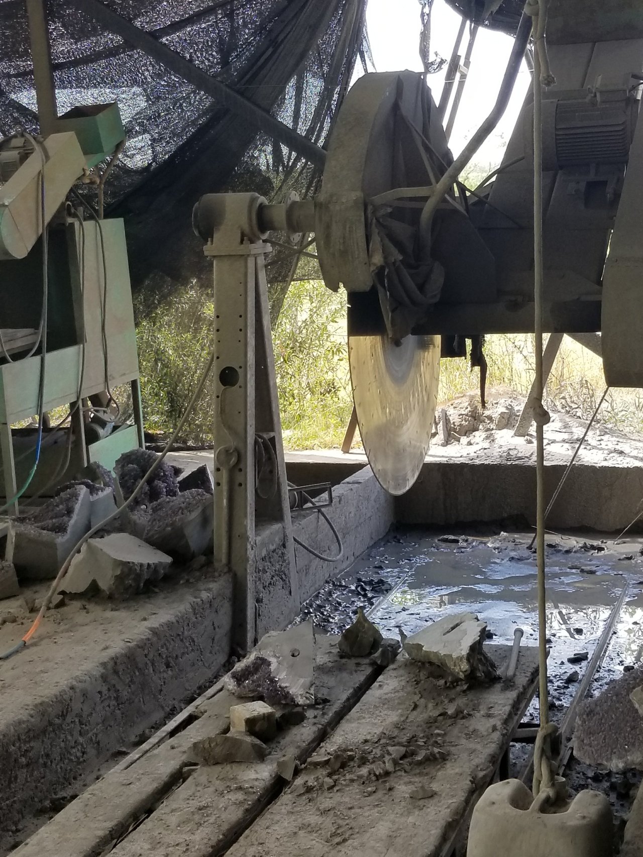Maybe it’s my Canadian sense of mining and other industry that made me expect a much larger operation. Instead, we pulled into a yard with a few outbuildings, a few dogs wanderimg around, and a few men working near a dump truck and a couple of front end loaders, no one wearing the kind of safety equipment that would be required on a Canadian worksite.