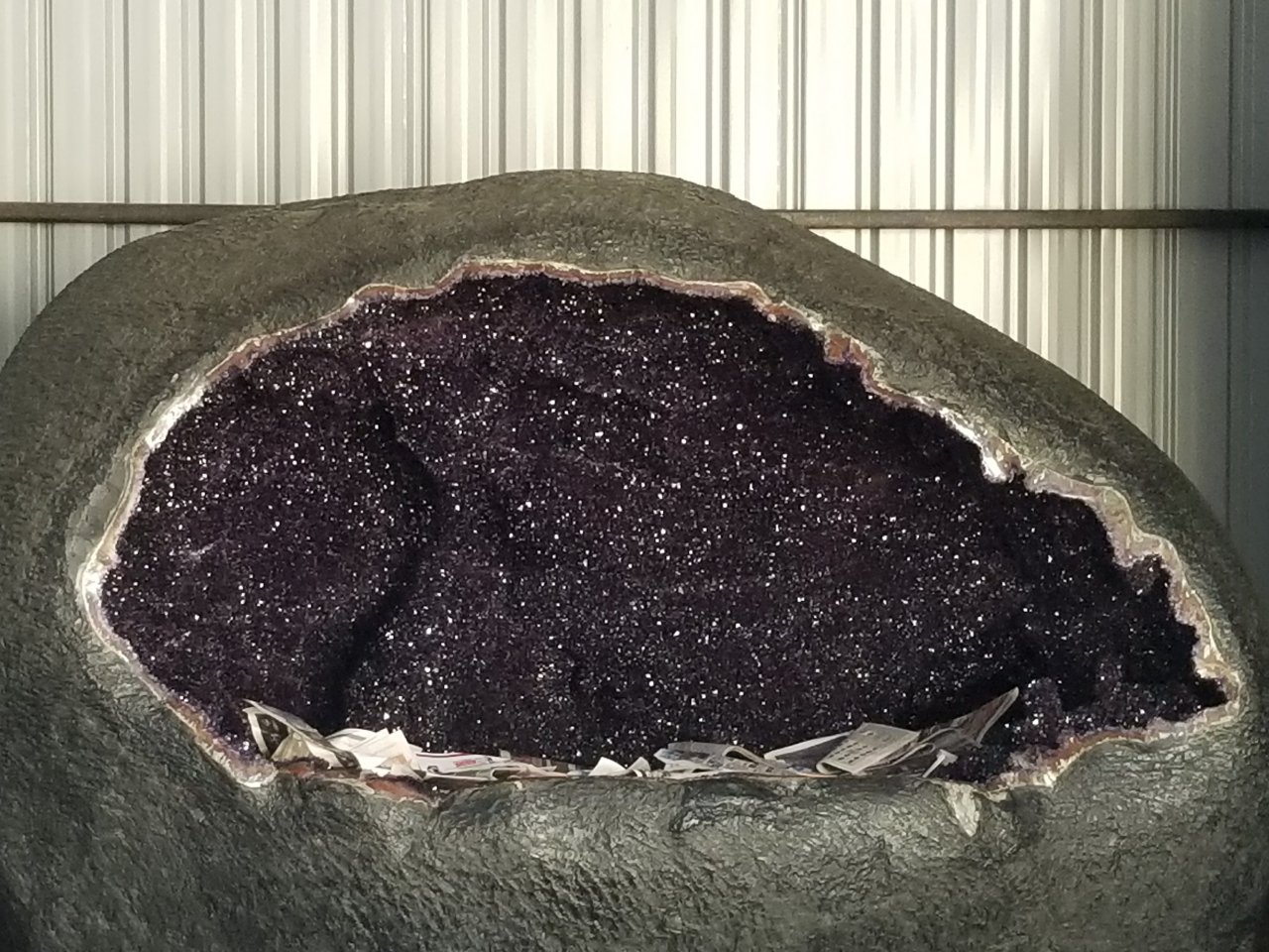 One gigantic geode came with a particularly interesting story. It was awaiting shipment to China, purchased for $100000 by someone who wanted to sit inside it and meditate.