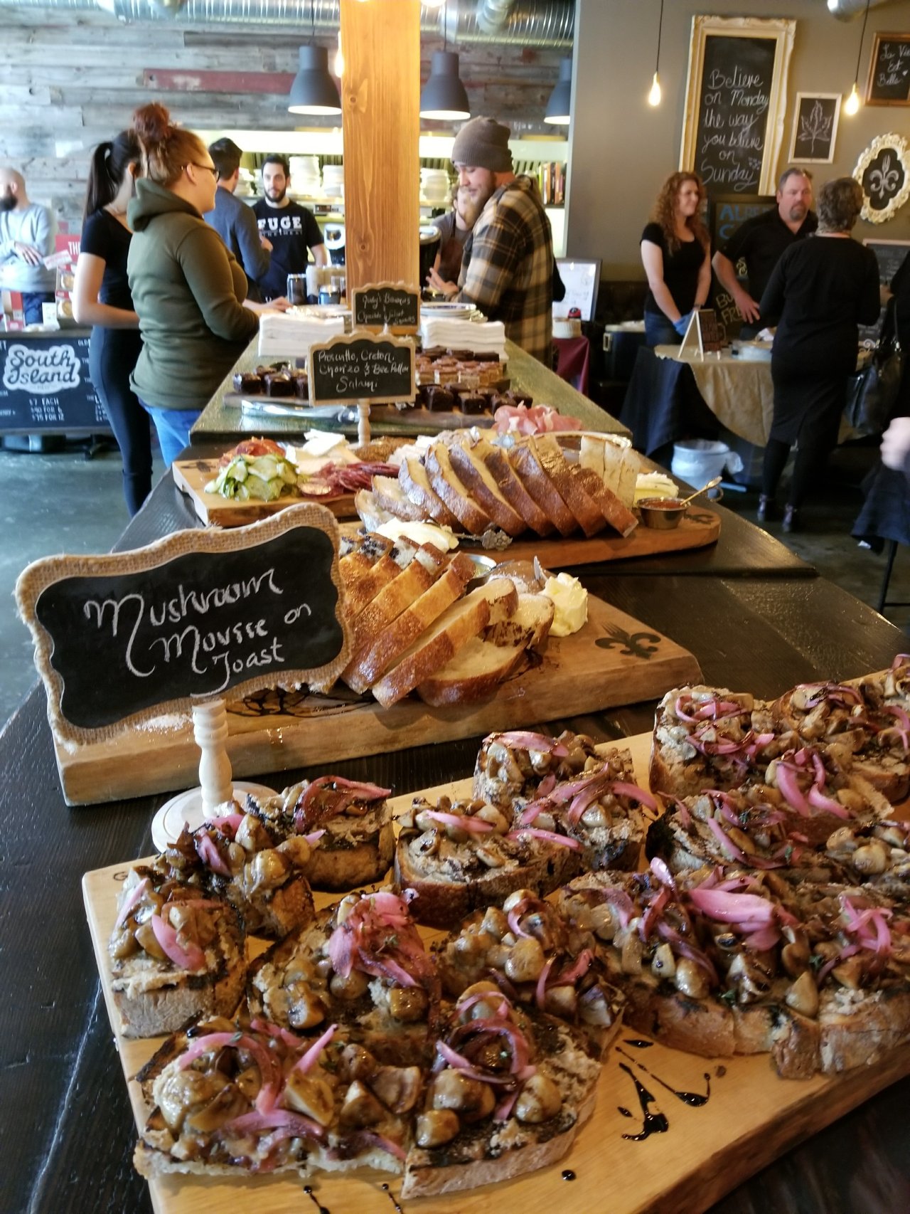 They’d cleared back their tables for the afternoon to make way for the producers to show off their goods and make connections with those of us who were interested in knowing more. And, of course, this being a gathering of culinary professionals, Chartier also provided food- lots and lots of delicious, locally produced, artfully arranged food.