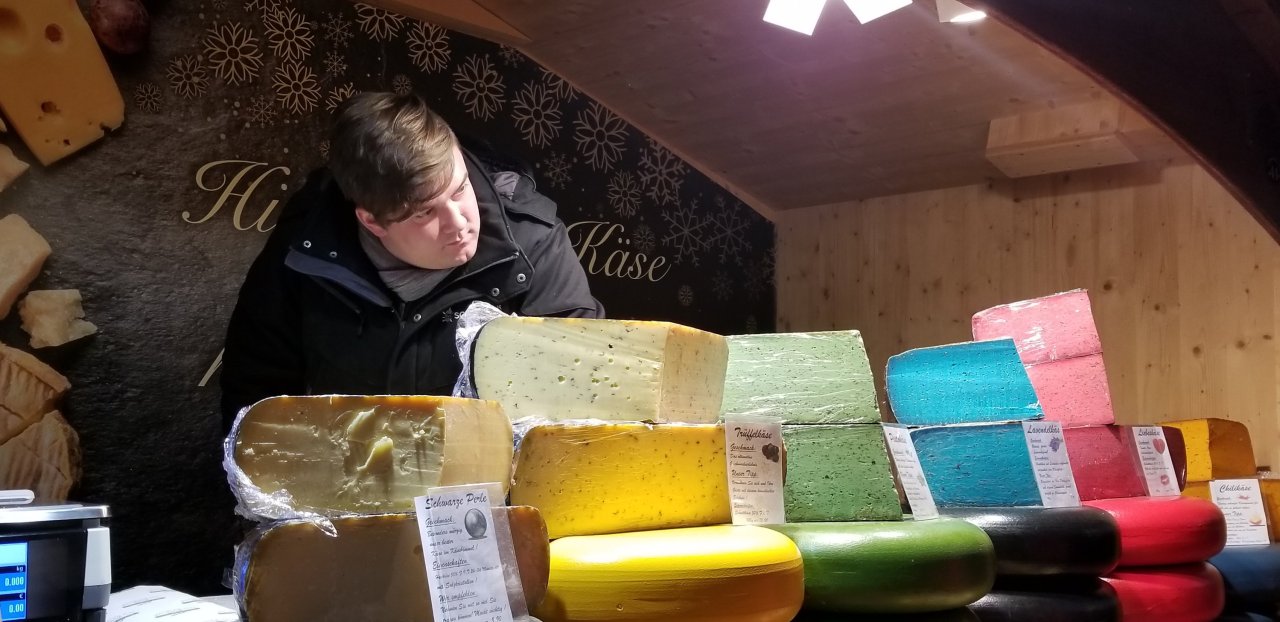 1) The market on Stephenplatz: Standing under the protection of the towering St. Stephen’s Cathedral in the heart of downtown Vienna, this smallish market was packed when we visited on Saturday, so full it was hard to get near the 40 or so booths. Sign-carrying guides from river cruises and bus tours herded around passengers clutching souvenir Christmas mugs of gluhwein, and aggressive hawkers on the plaza did their best to interest people in buying tickets for the church’s concerts. We hastily retreated from the crowds that day, but returned on a weekday evening just as the sun was setting and enjoyed ourselves much more.