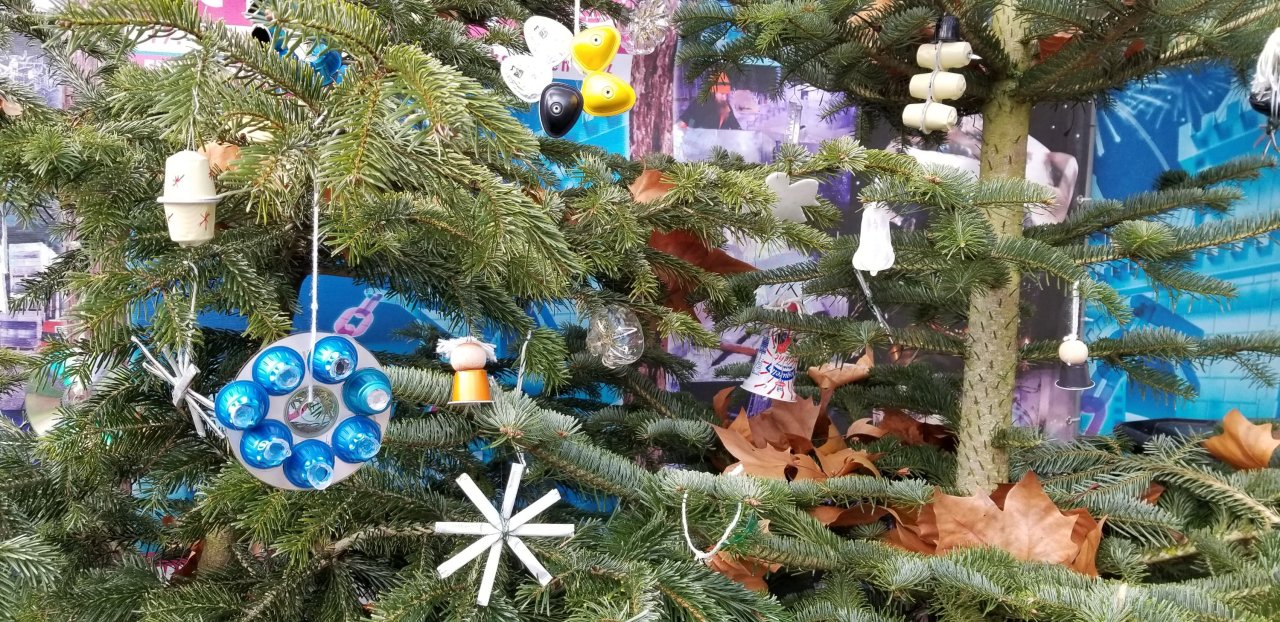 I also enjoyed the trees that had been decorated by local students, especially the one from a department of neuromedicine that made innovative use of their old CDs and used cream and Keurig containers.
