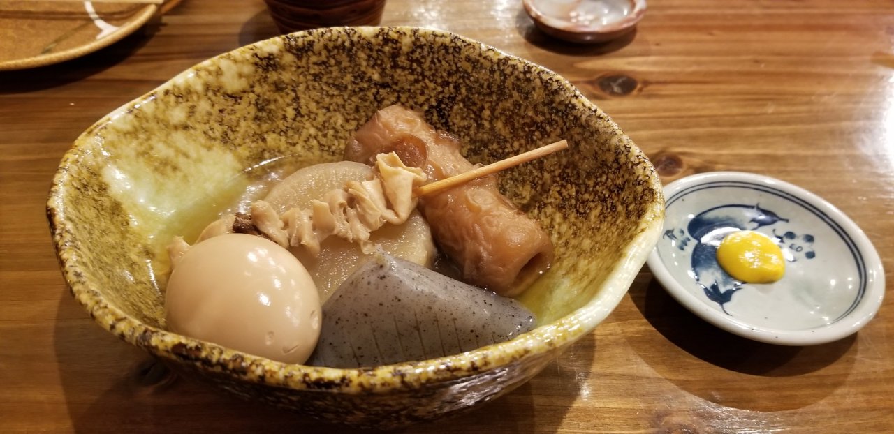 First on the table was a serving of egg, fish, and Japanese purple sweet potato, all of them porous enough to absorb the delicate broth at the bottom of the dish. The longer they sat, the tastier they got.