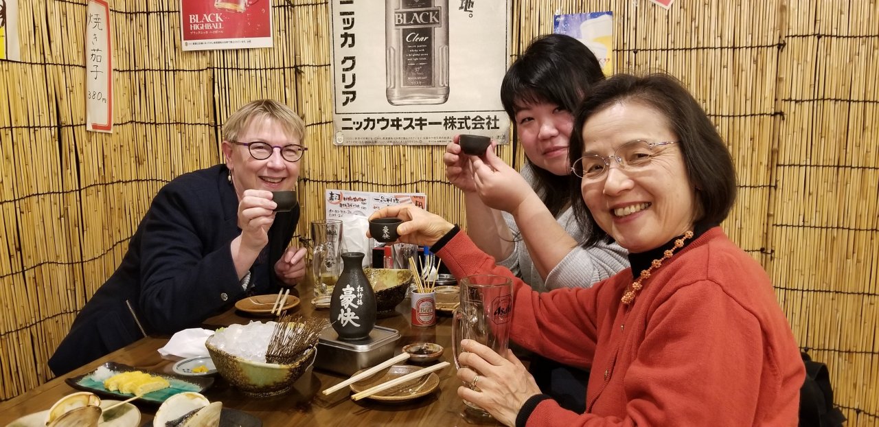 Our early dinner Asahi beers had long since disappeared so someone decided we needed some sake. Its smooth heat warmed my throat and I asked for a refill. “Easy to get drunk on sake,” one of the profs pointed out, so I turned my attention back to eating.