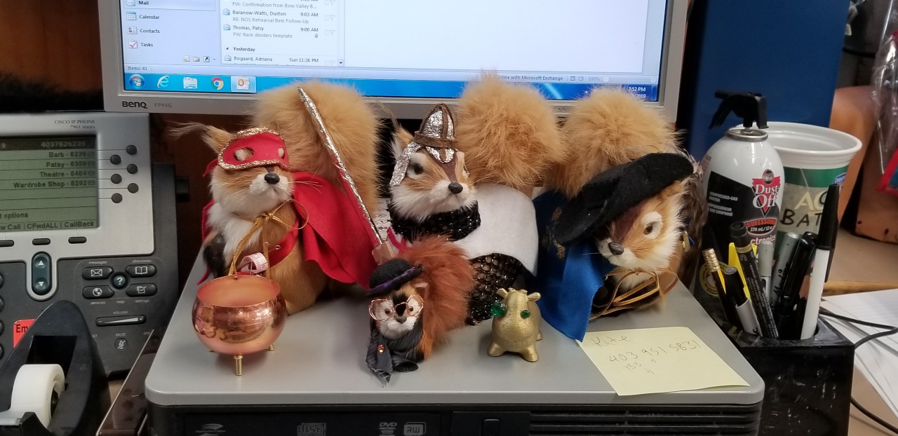 Smaller items for onstage use are manufactured in the prop shop. It was fun to speculate on what the prototypes might eventually look like and how they’d be used by the actors during a performance.