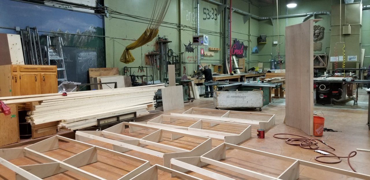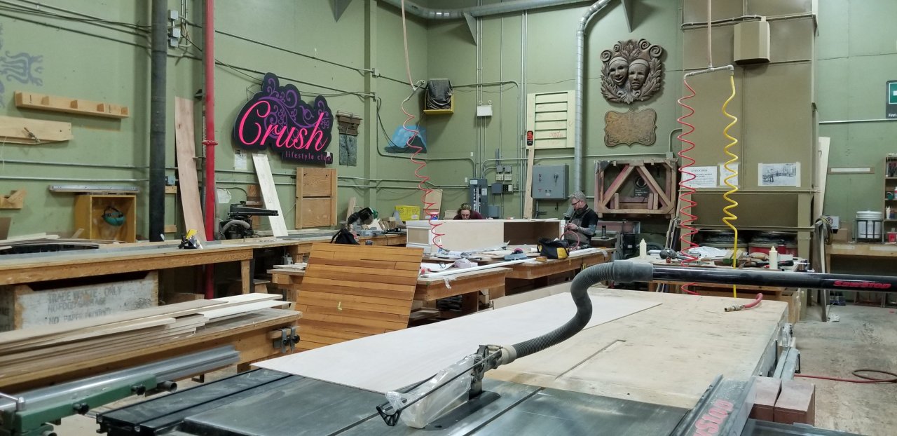 Our next stop was the carpentry shop, where crews build backdrops and large props. We carefully stepped around equipment we couldn’t identify and the wooden skeletons of who-knows-what laid out on the floor.
