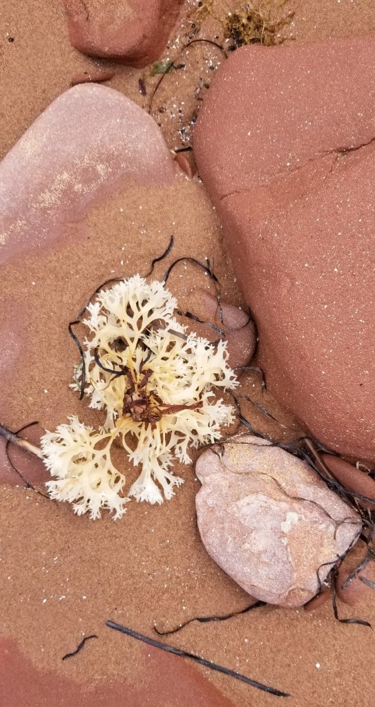 After our tour, we headed off to Thunder Cove Beach, a ” locals only” destination on the north shore shared with us by Mary Anne, our b and b owner in Summerside. We’d never have found it without her recommendation: there is no official parking lot or other facilities, just cars lining a red dirt road and families carrying floaties and coolers up and over the sand dunes to the beach below.