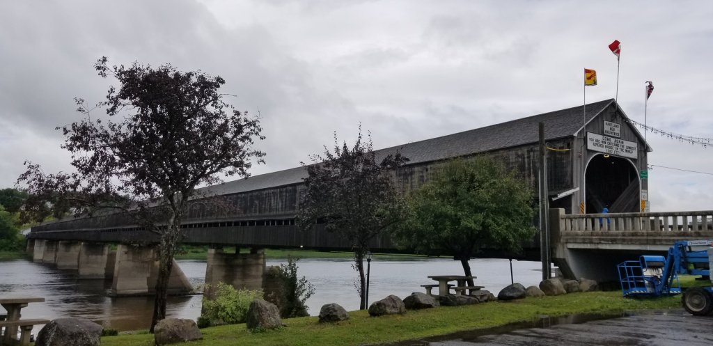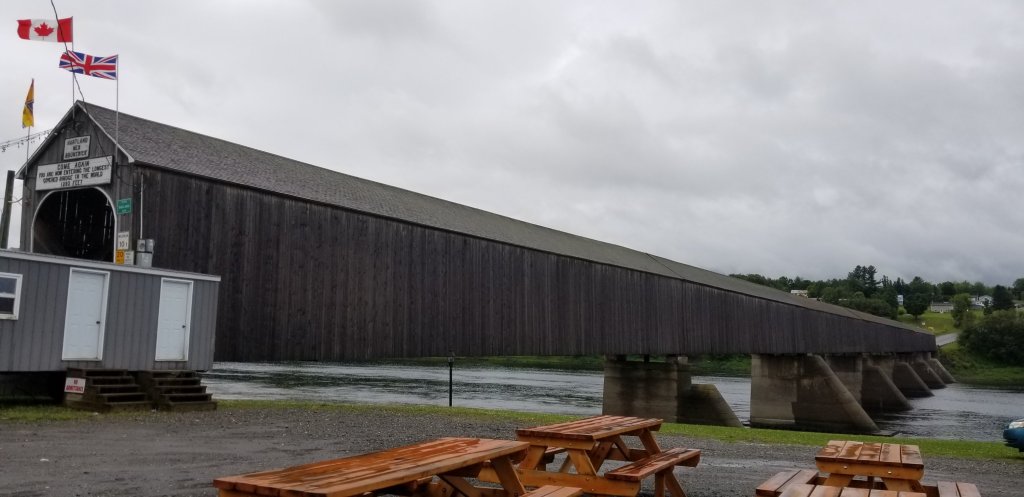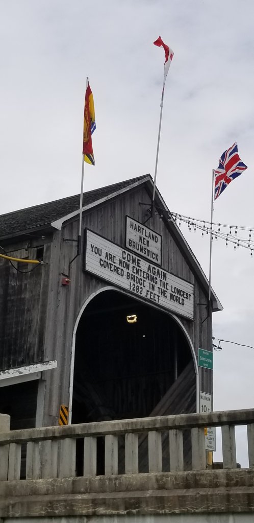 But the one we made a point of seeing is the longest covered bridge in the world, in Hartland, a couple of hours outside of Fredericton. Local citizens built it in 1901, fed up with waiting for the government to respond to their request to help them and their goods get across the St. John River quickly and safely (some things never change, right?)