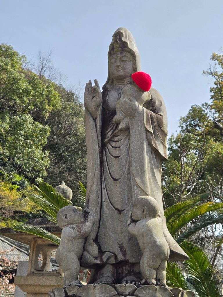 Throughout the site, childlike statues wear red caps and bibs placed there either by grieving parents as part of their prayers for their children who passed away, or to give thanks when children recovered from a serious illness.
